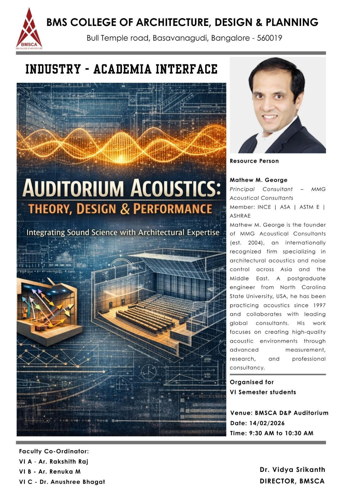 At BMS College of Architecture, Design and Planning, we are committed to fostering an enriched academic environment that nurtures creativity, critical thinking, and social responsibility. As one of the oldest and most recognized institutes of architecture in the region, we have been delivering quality architectural education for over four decades.